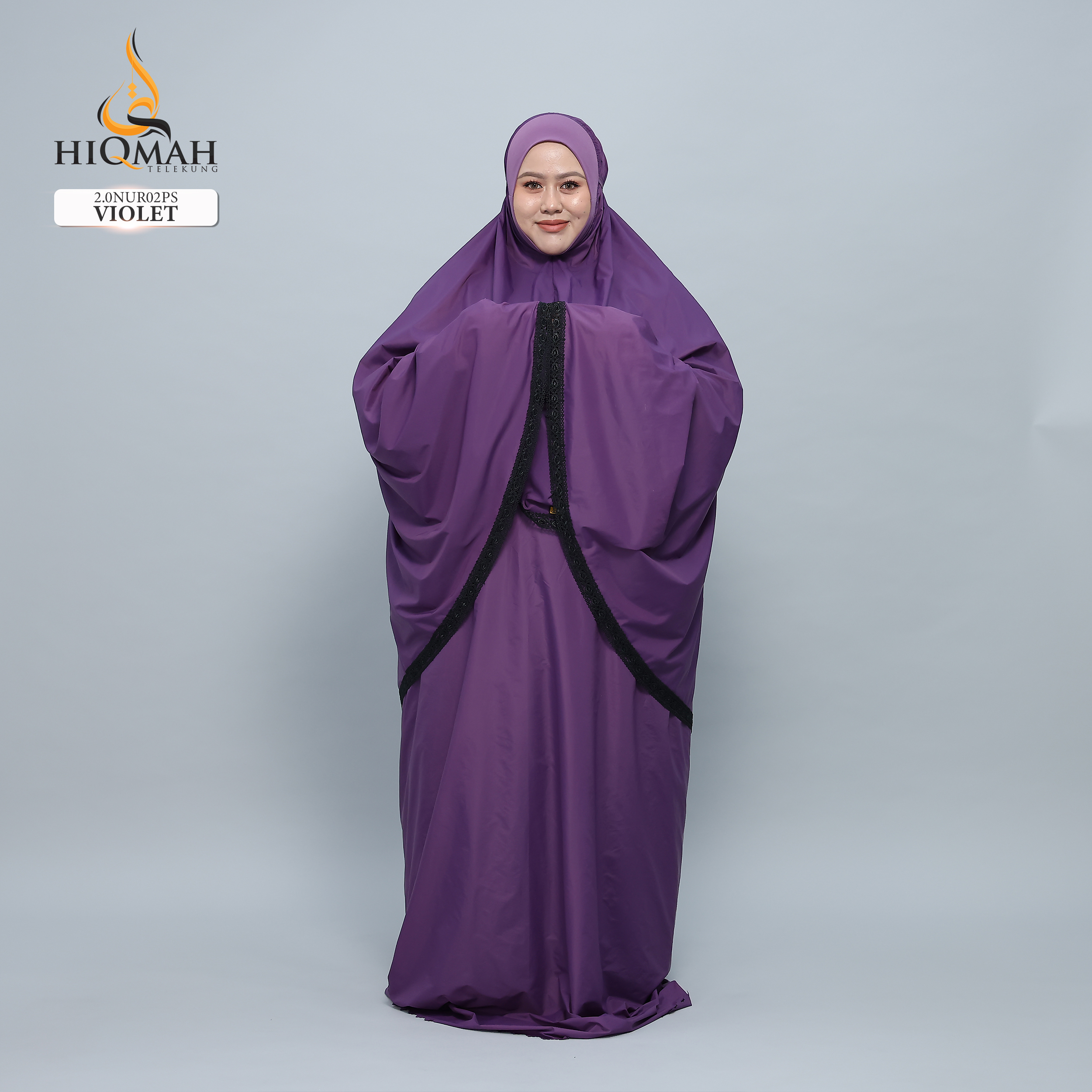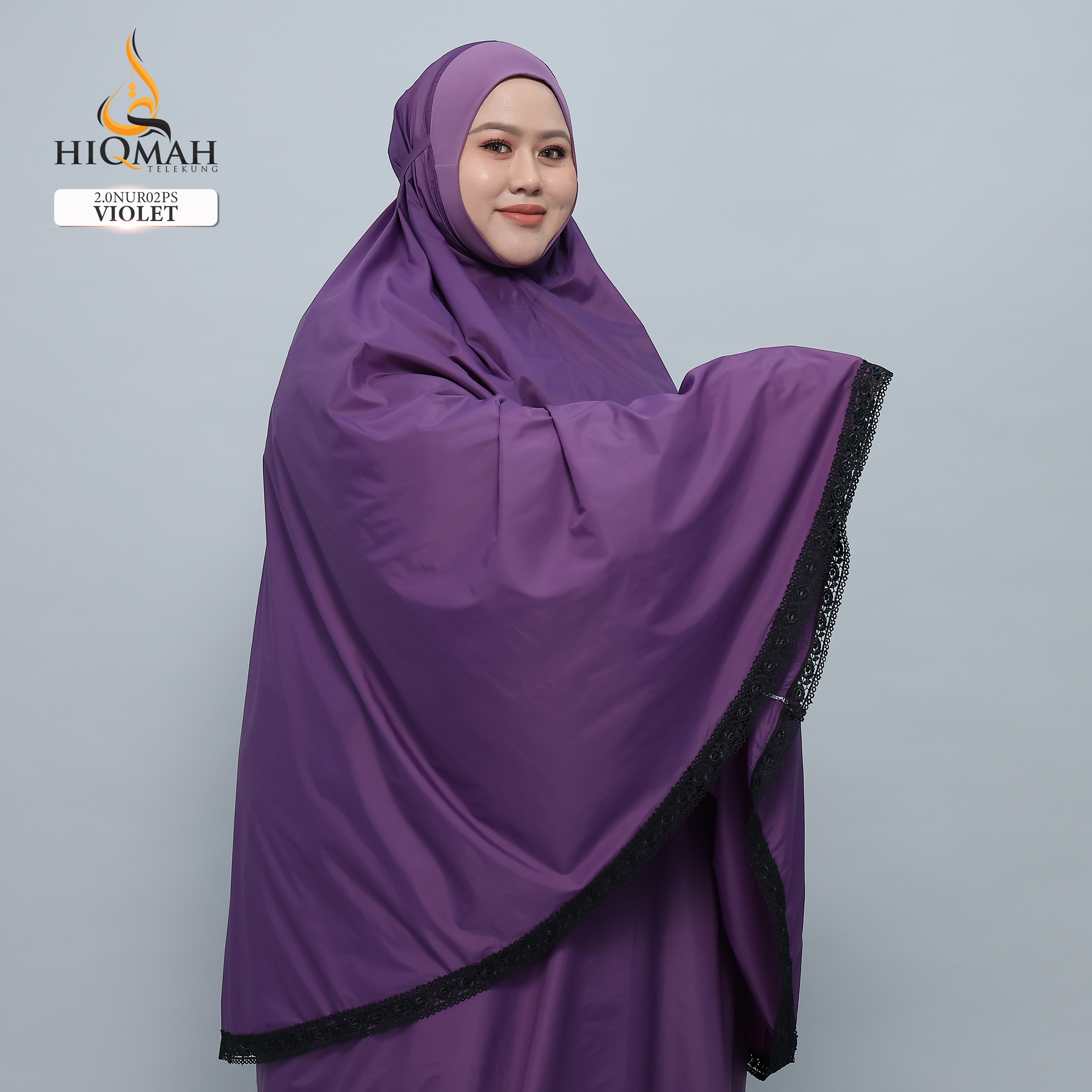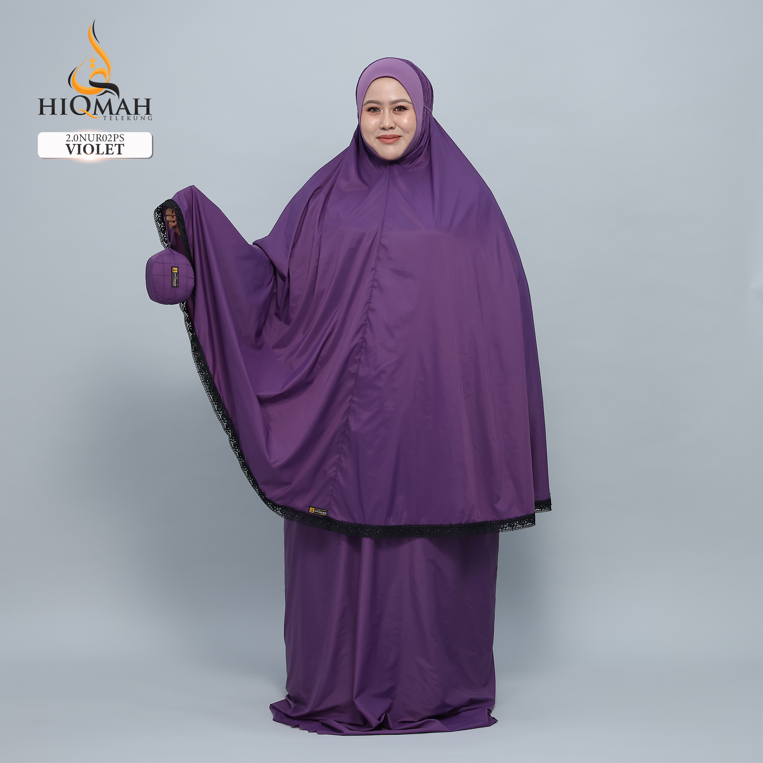 - Dilengkapi dengan tali ikat di belakang untuk menyesuaikan keselesaan, memastikan telekung terletak dengan elok di wajah.