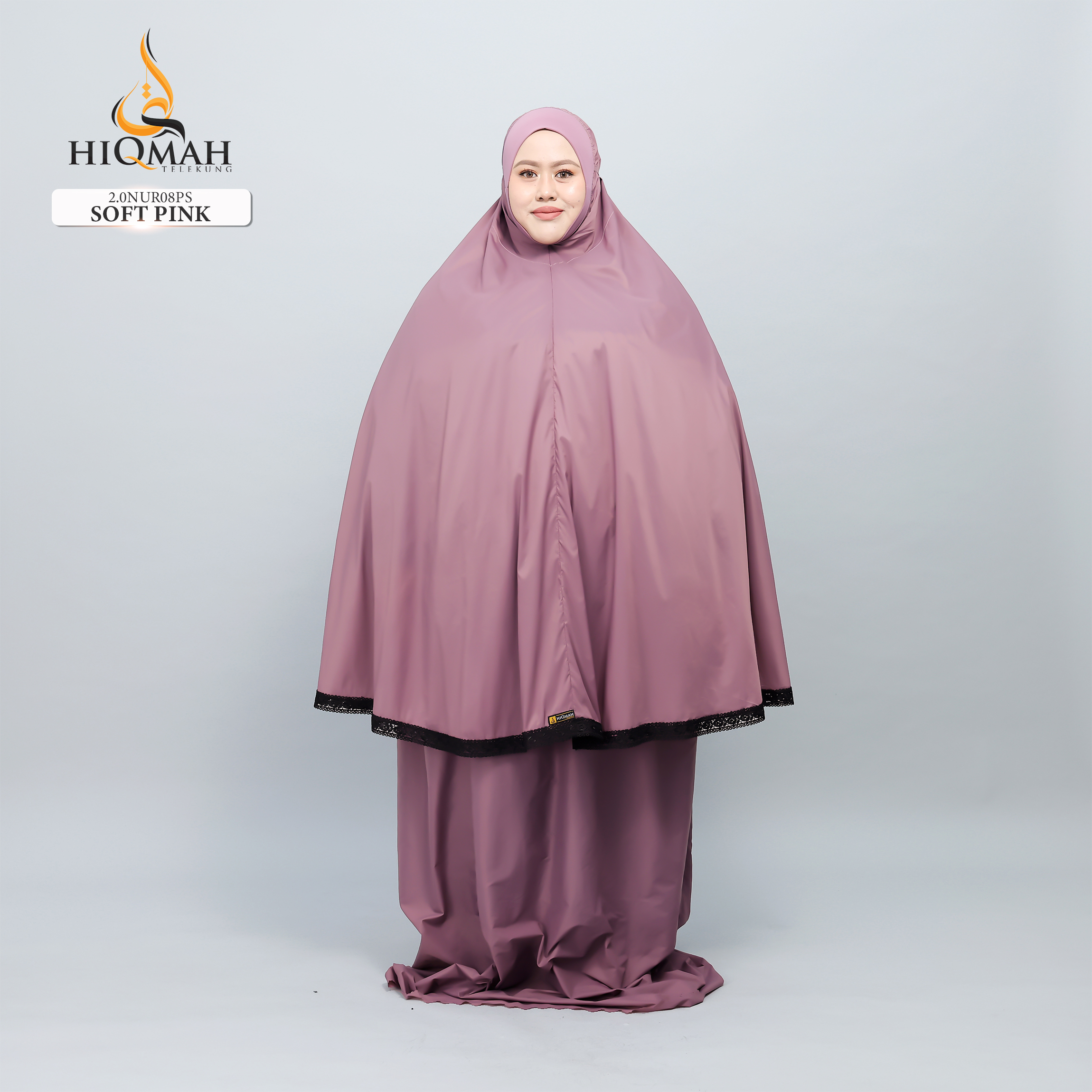 - Dilengkapi dengan tali ikat di belakang untuk menyesuaikan keselesaan, memastikan telekung terletak dengan elok di wajah.