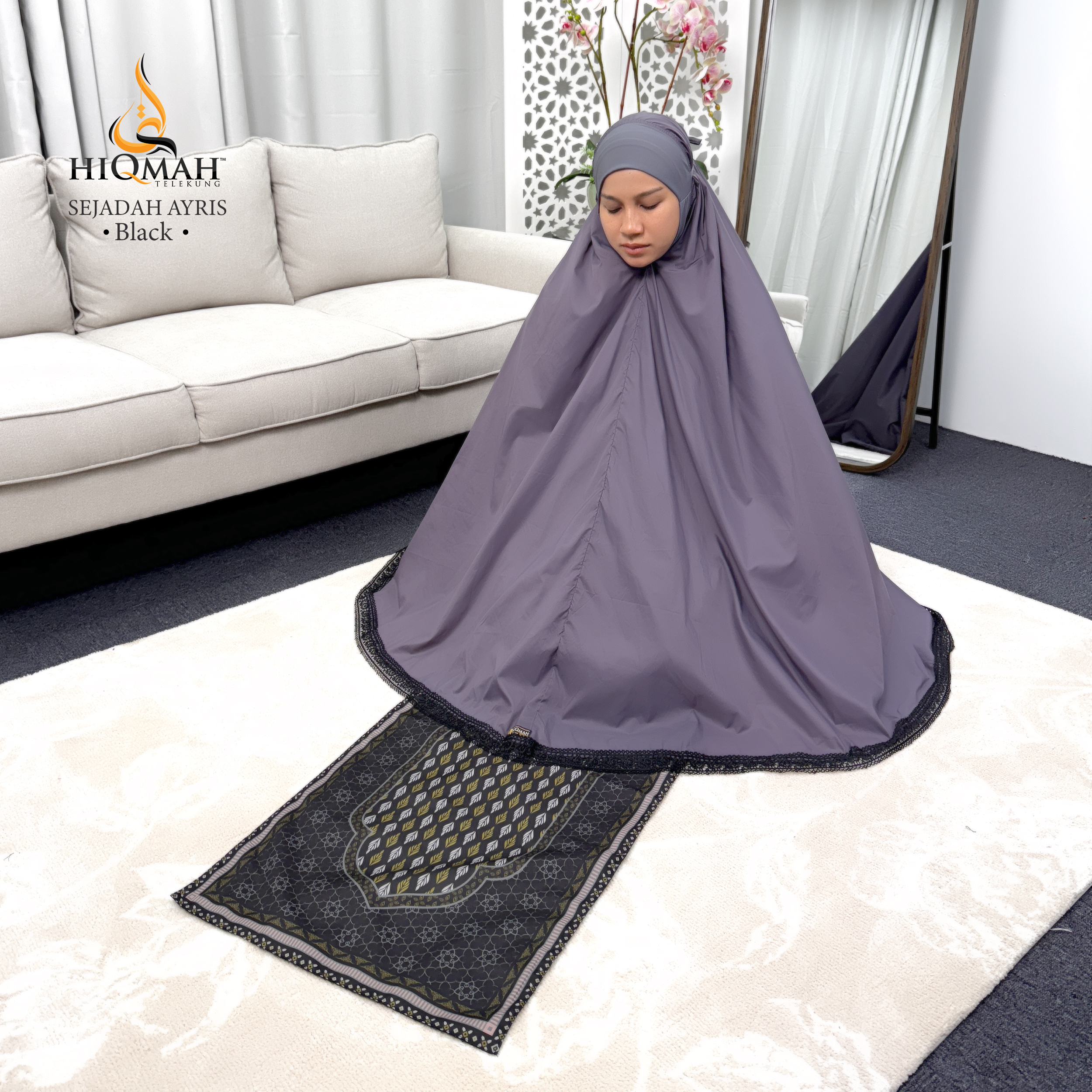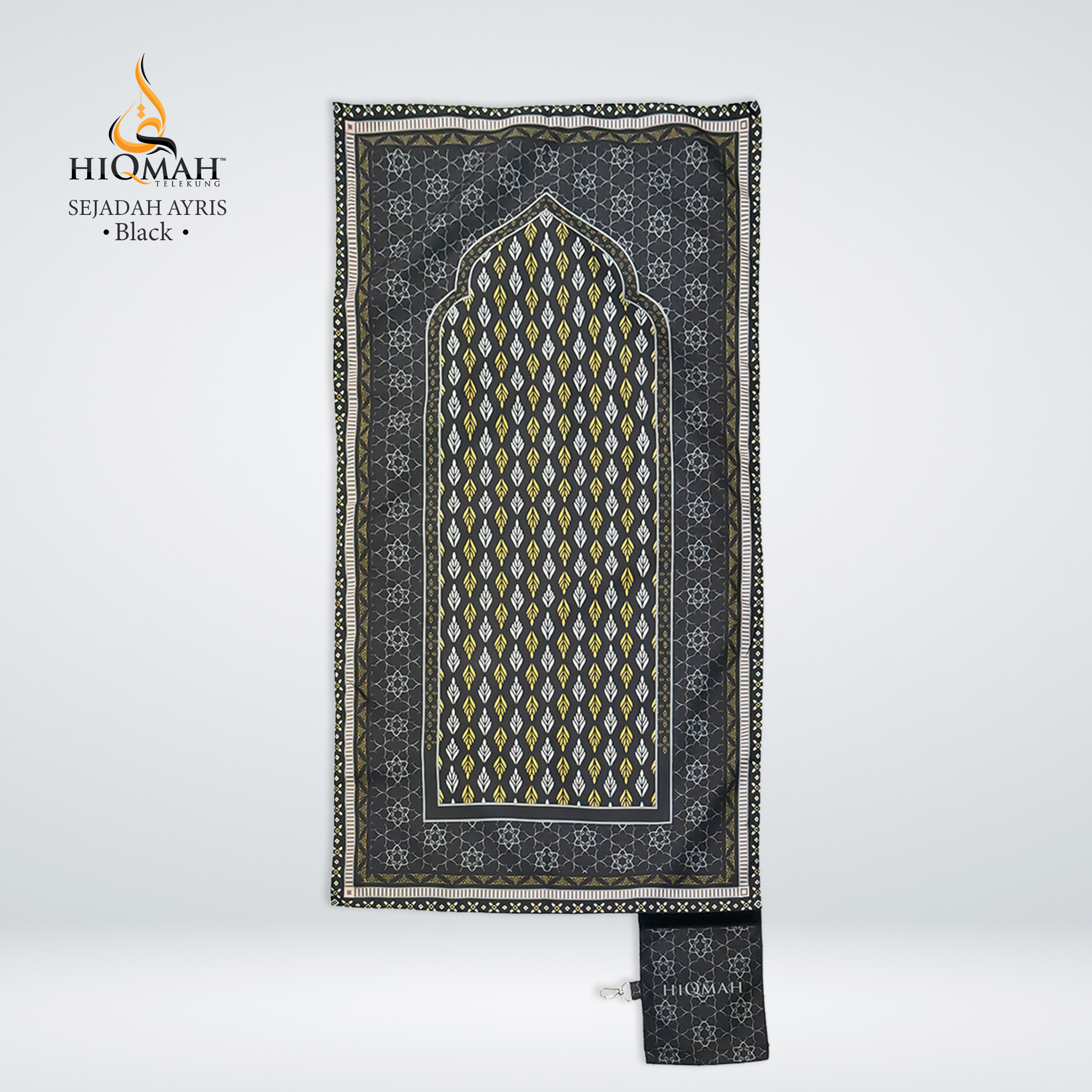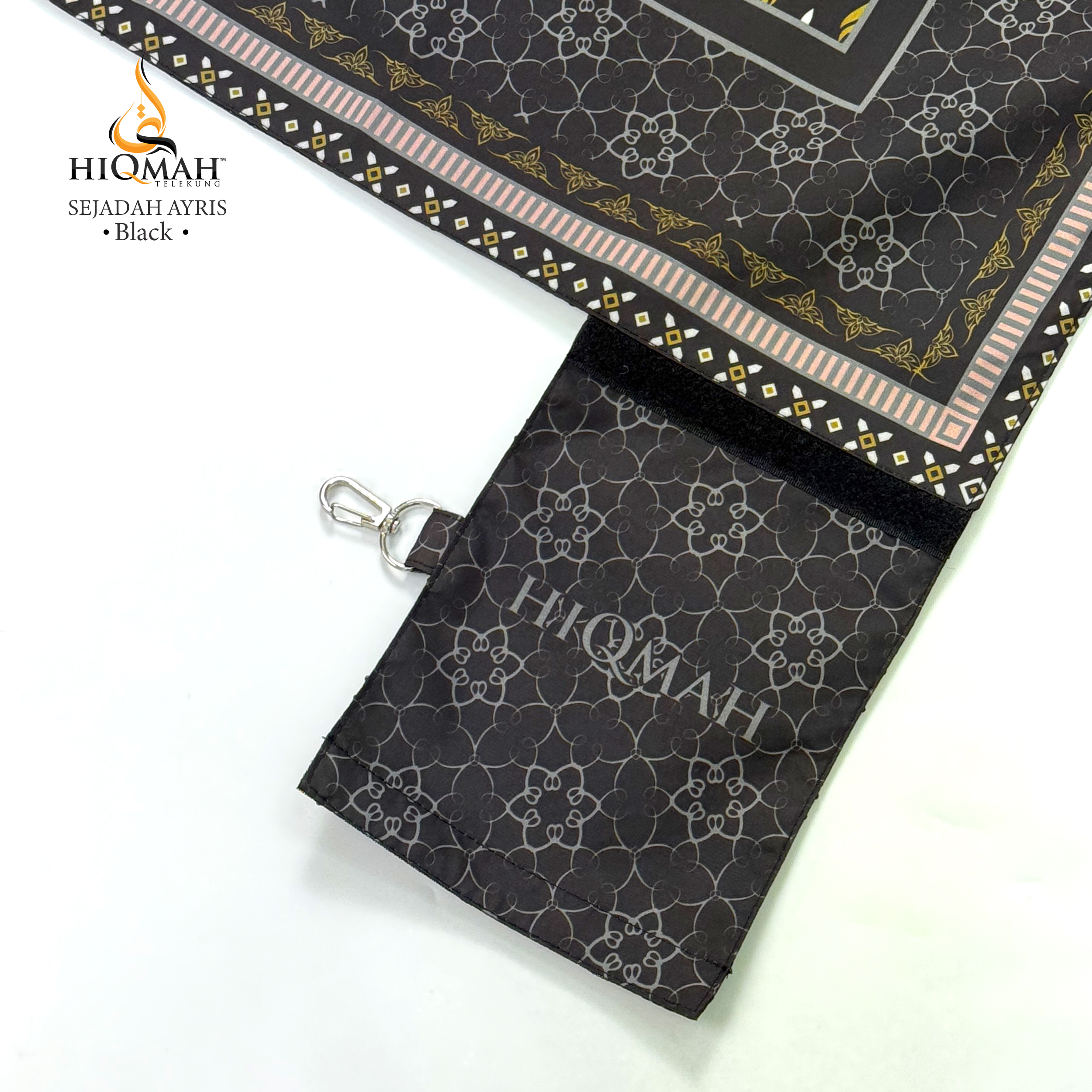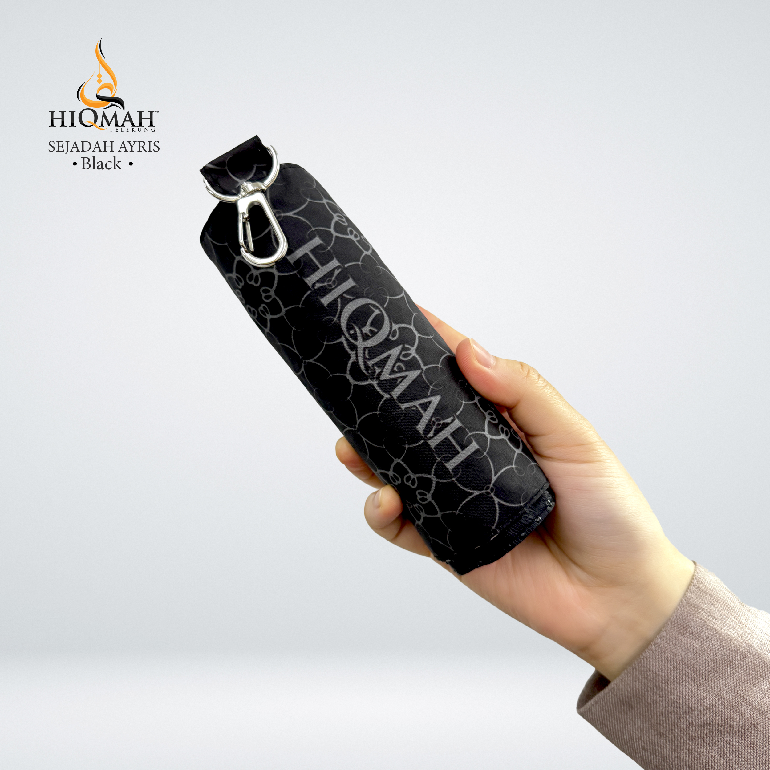 ALAS SEJADAH TRAVEL AYRIS – BLACK [ANTI SLIP] ROLLED/HANDHELD